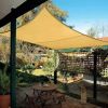 MATERIAL: The sun shade sail is made of 185 gsm UV protected high density polyethylene (HDPE) shade fabric with strong stitched seam. With Durable Stainless Steel D-rings in each corner make the sun sails easily attached to any sturdy connection point to provide sun protection and personal design where you need it.UV BLOCKAGE: Protects from harmful UV rays and direct sunlight exposure. Blocks harmful rays of the sun without trapping hot air beneath. Fabric has high density breathable blockage, while effectively reducing heat, blocking up to 95% of UV rays, and protecting skin.BREATHABLE MATERIAL DESIGN: Allows cooling breezes and light to pass through for better airy and comfortable space, allows rains to pass through, so there's no pooling water( So it is not waterproof)MEASUREMENT: Measurement is taken from D ring to D ring,leave 1.5 - 2 foot space for the hardware kit between shade sail D ring and mounting points,all edges are finished slightly curved so it can be stretched tightly.APPLICATION: Widely used for a patio, lawn, garden, pool, bbq areas,pond, deck, kailyard, courtyard, backyard, dooryard, park, carport, pergola, sandbox, driveway or other outdoor occasions.