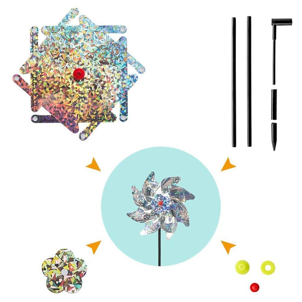 3, Humane Bird Deterrent: Most birds are afraid of flash. Our whirl reflective pinwheel just scare the birds away, no harm for the birds. It's a eco-friendly natural solution to protecting birds and creating a free environment for birds.