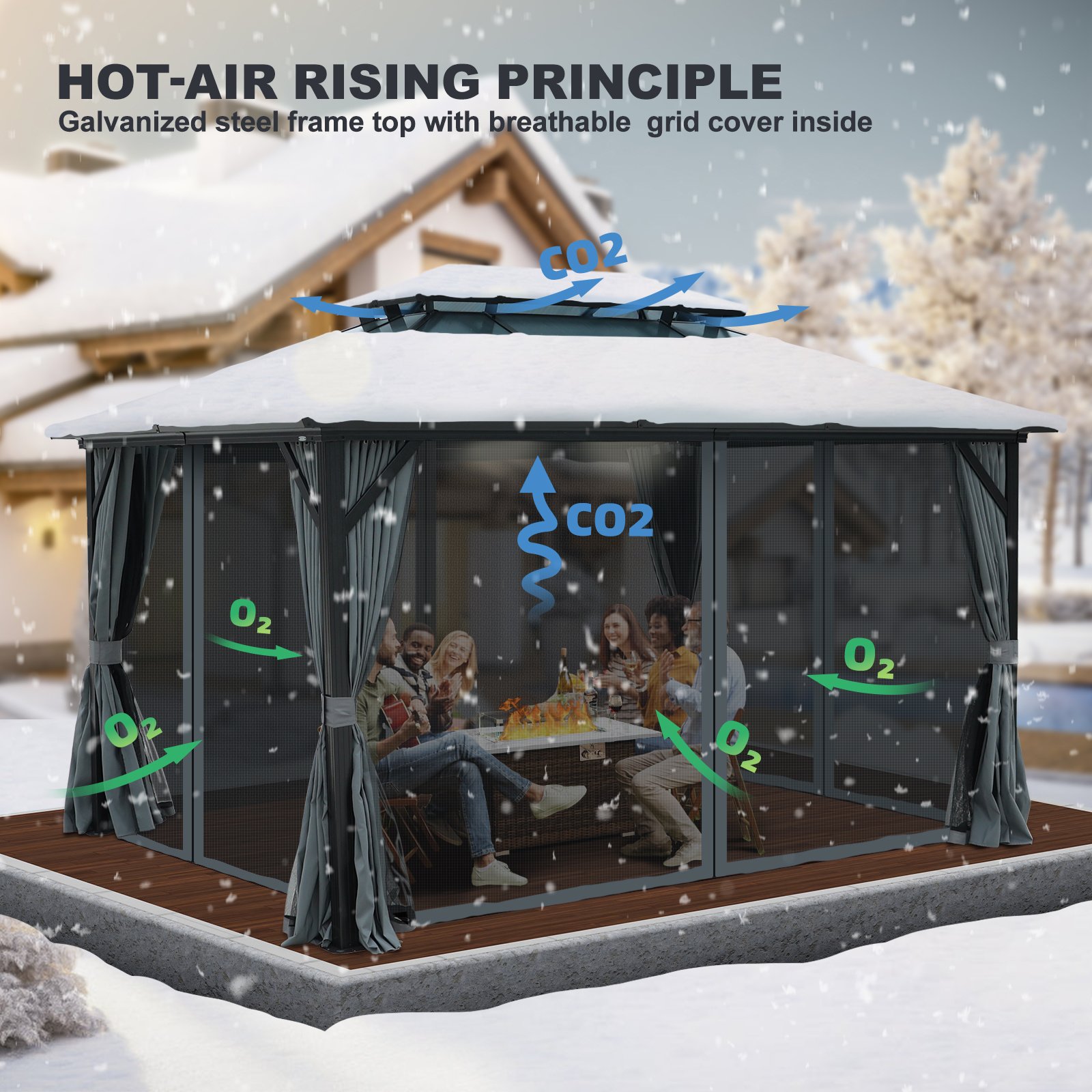 10X13ft Patio Gazebo with Netting & Curtains, Black