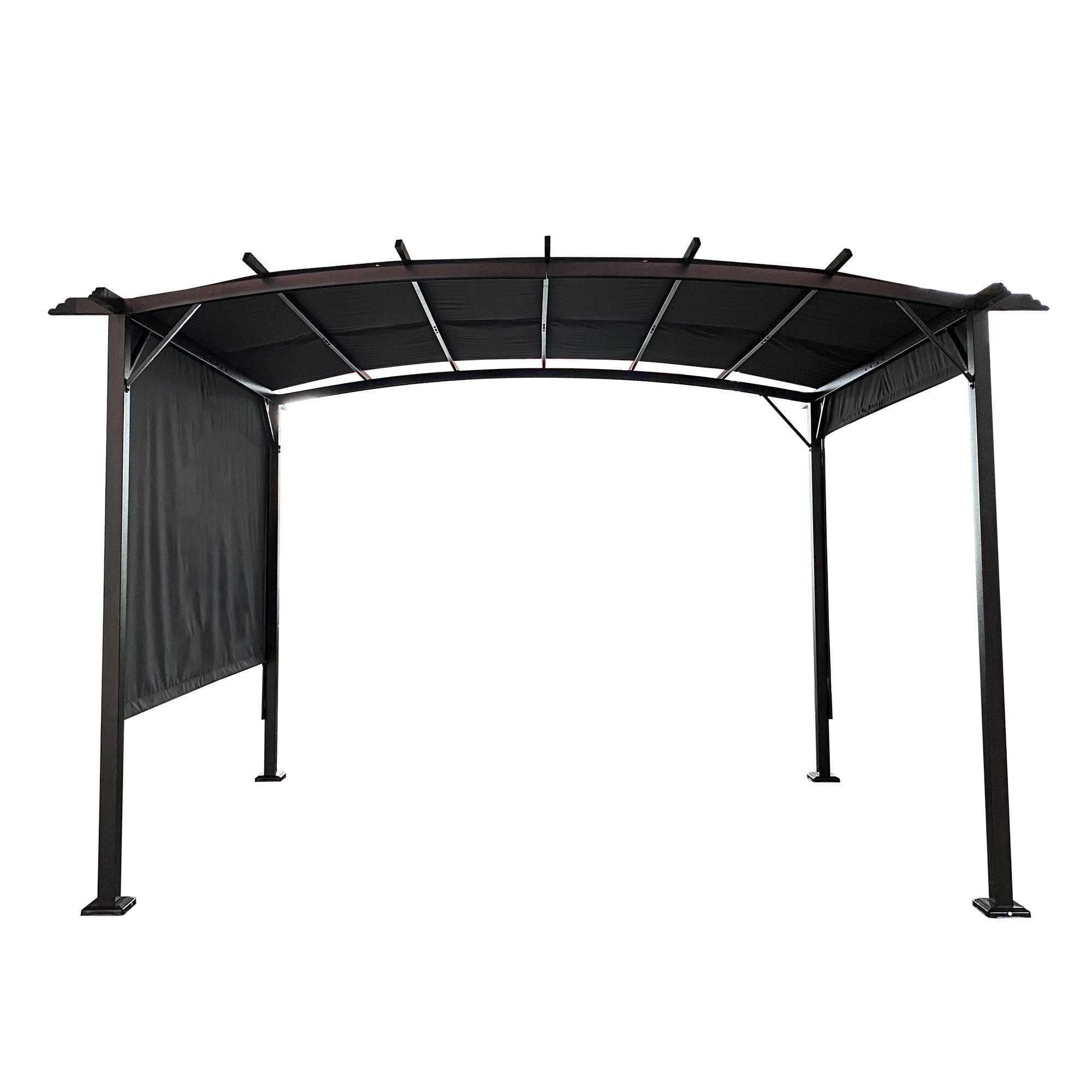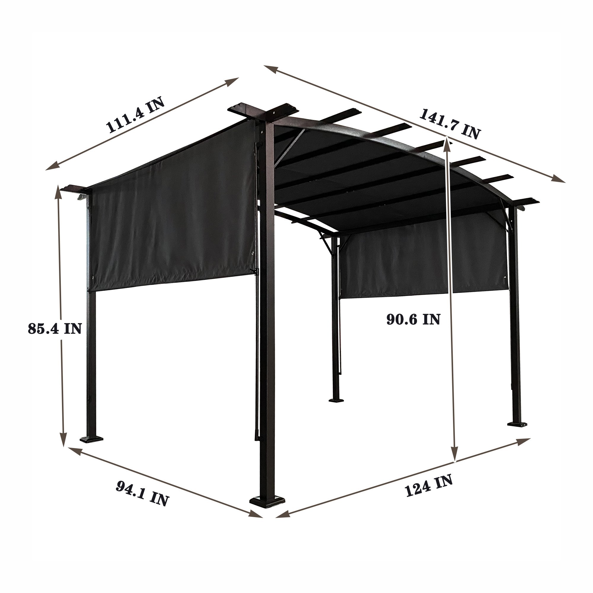 Product FeaturesProduct Type : Outdoor Pergola Grape Gazebo Roof Material: Polyester Main Roof Color: Gray Retractable Canopy: Yes Tiered Roof : No Frame Material : Steel Frame Finish Color : Black Frame Finish : Powder Coated Finish Rust Resistant: Yes Pieces Included: 1 x Gazebo; 1 x Instruction Adjustable Height: No Weather Resistant: Yes Simple Water Resistant : Yes Compatible Installation Surfaces : All Surface Types Country of Origin : Made in ChinaInstallation Required : Yes Level of Assembly : Full Assembly Needed Adult Assembly Required : Yes Suggested Number of People: 2 Installation Style : Anchored Additional Parts Required: No Assembly Instructions Included : Yes Installation Tools Included : Yes