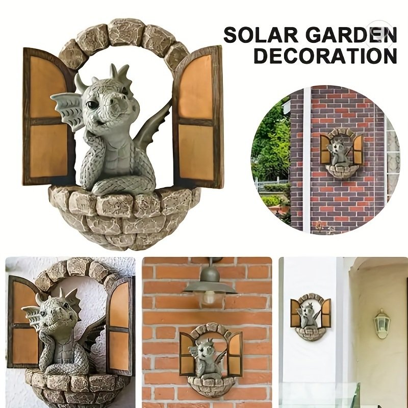 Home > 1pc Resin Dragon Sculpture, Window Front Dragon Statue, Fairy Garden Decoration, Wall Hanging For Outdoor Indoor Garden Yard Porch Balcony Patio Decor