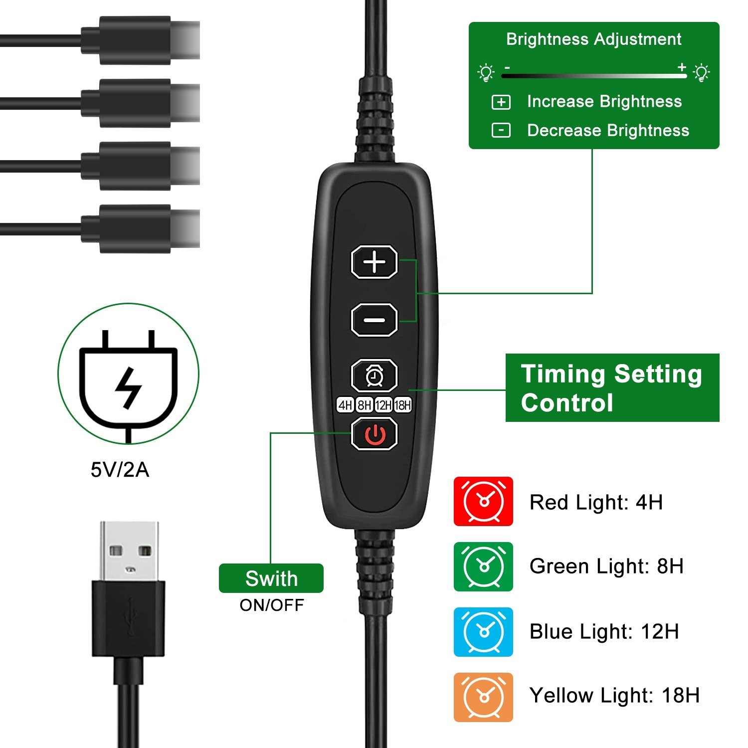 Timing Function Mode:4(Red Light:4H;Green Light:8H;Blue Light:12H;Yellow Light:18H)