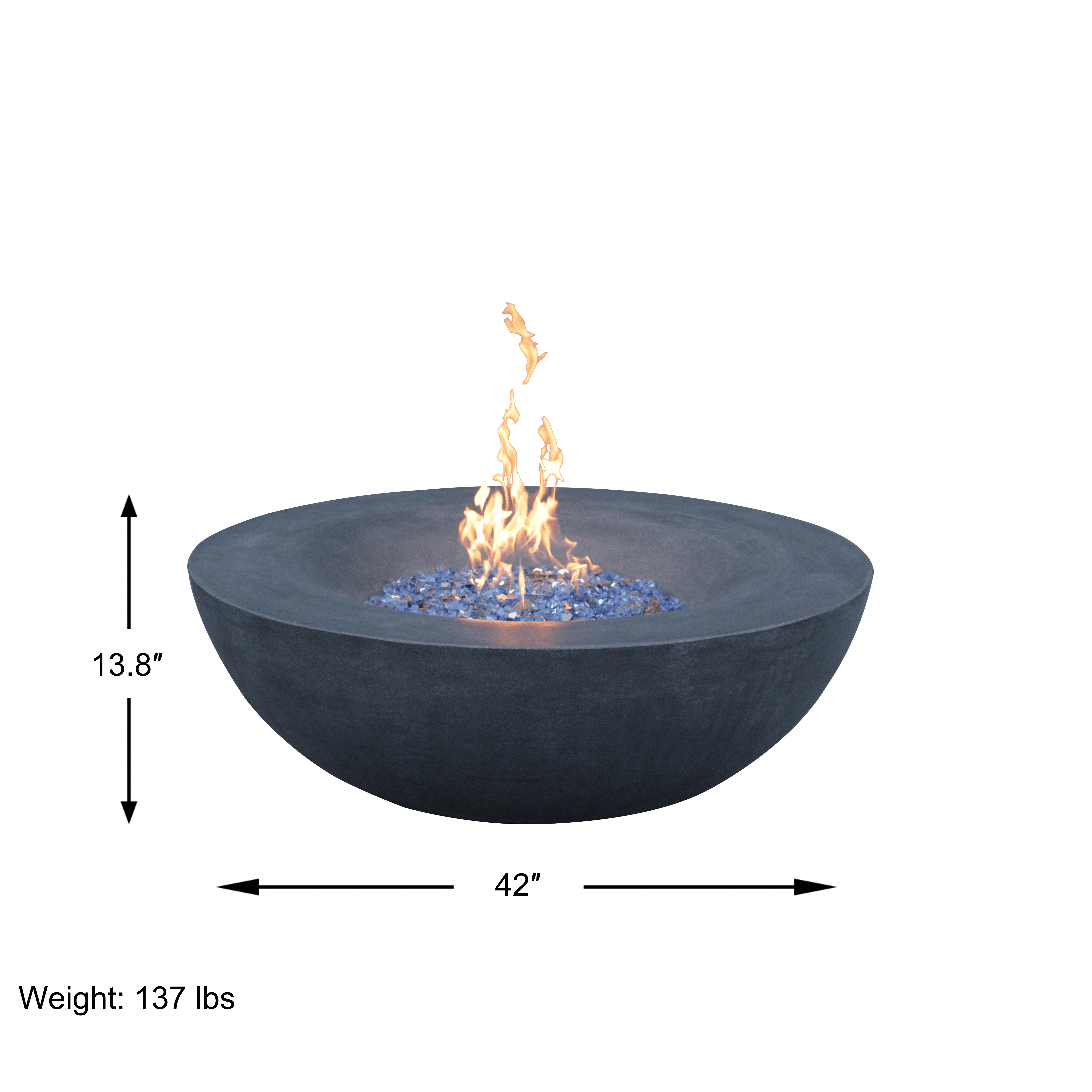 42 Inch Outdoor Concrete Propane gas Fire Pit bowl in Dark Gray color