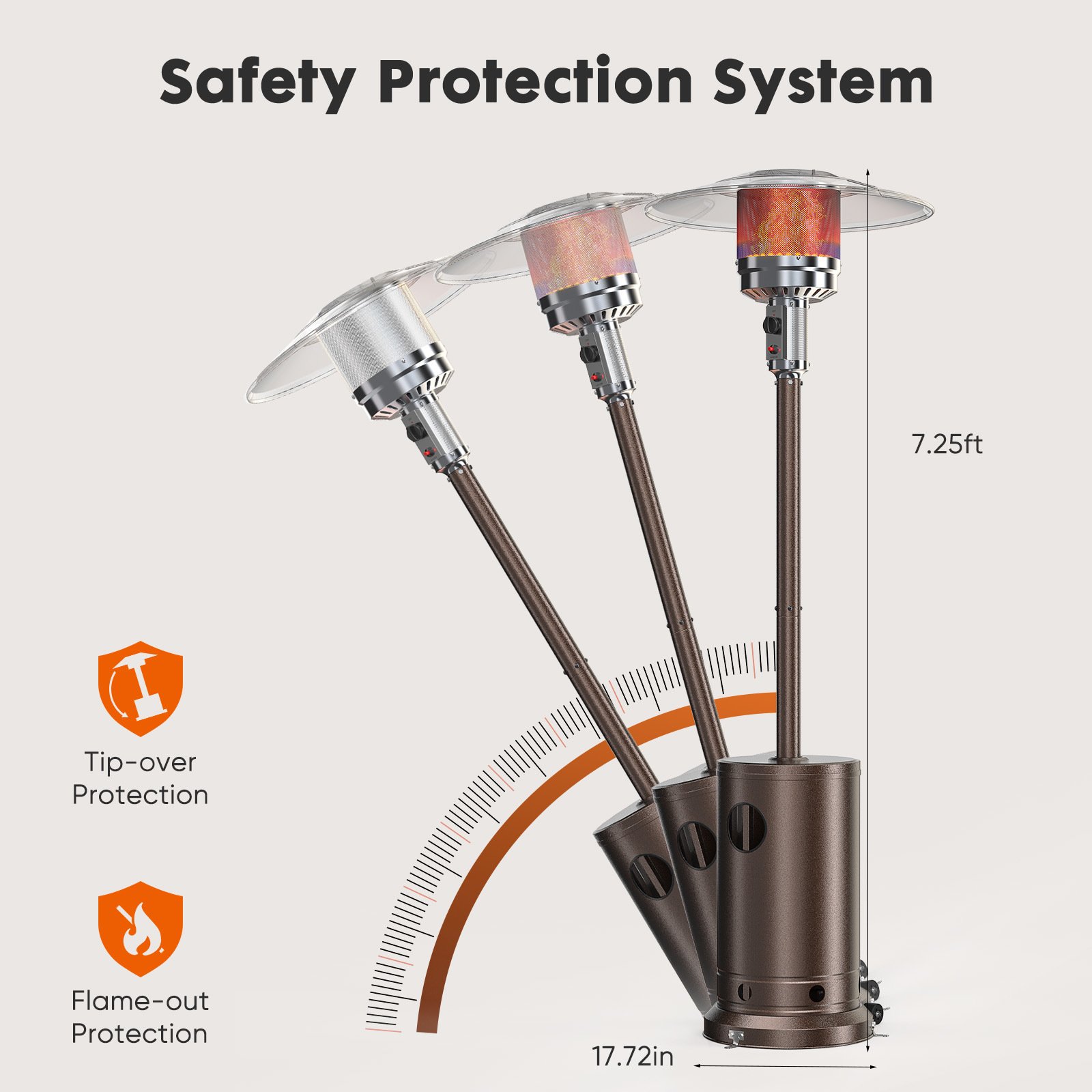 48,000 BTU Propane Patio Heater with Tabletop, Double-Layer Stainless Steel Burner and Safety Protection System