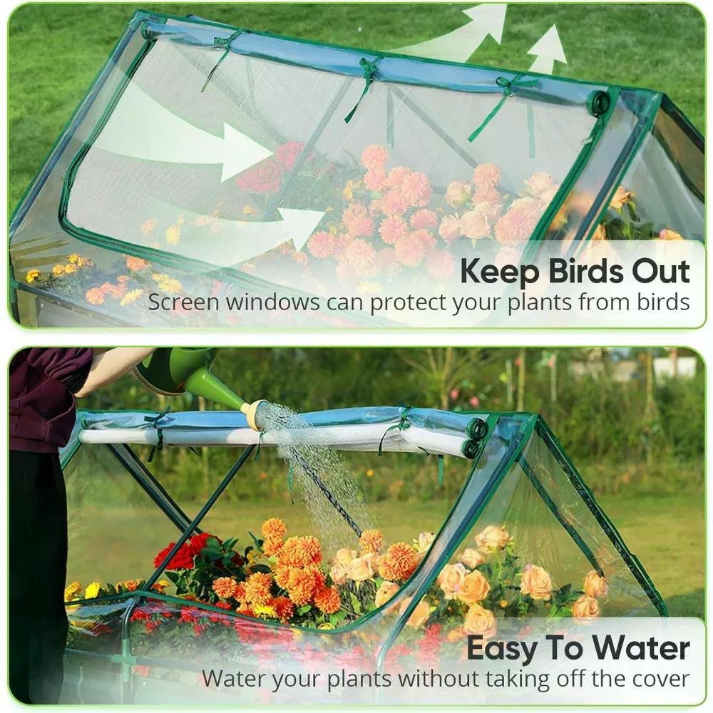 • [2 Zippered Screen Windows]Screen window of outdoor garden bed cover allows fresh air in and keep birds out, provide good ventilation and environment for plants. Also, you can control the temperature inside of cover by opening/closing window.
