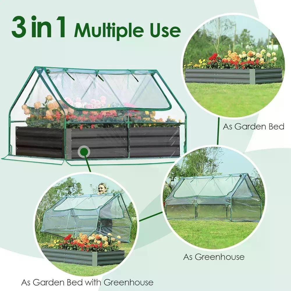 • [Garden Bed with Greenhouse Kit]3 in 1 Galvanized raised garden bed kit, 1 kit equals 3 products: garden bed, dismountable mini greenhouse, combination of garden bed with greenhouse. Perfect for you to customize your garden!