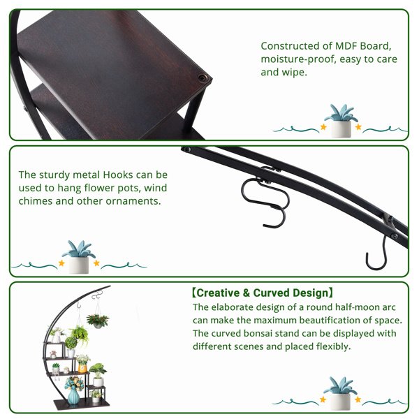 Artisasset 2pcs 5 Layers Semicircle Iron Wood Suitable For Garden Balcony Patio Lawn Home Decoration Plant Stand Flower Pot Stand Iron Flower Stand Bl