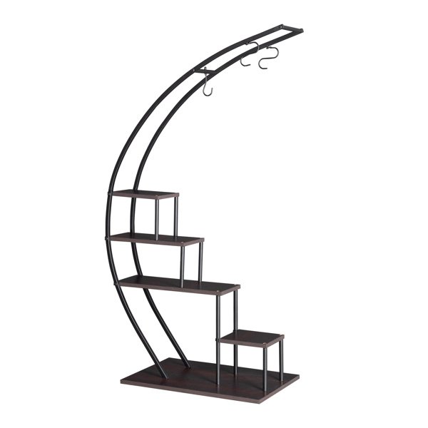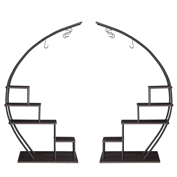 Artisasset 5 Layers Semicircle Iron Wood Suitable For Garden Balcony Patio Lawn Home Decoration Plant Stand Flower Pot Stand Iron Flower Stand Black