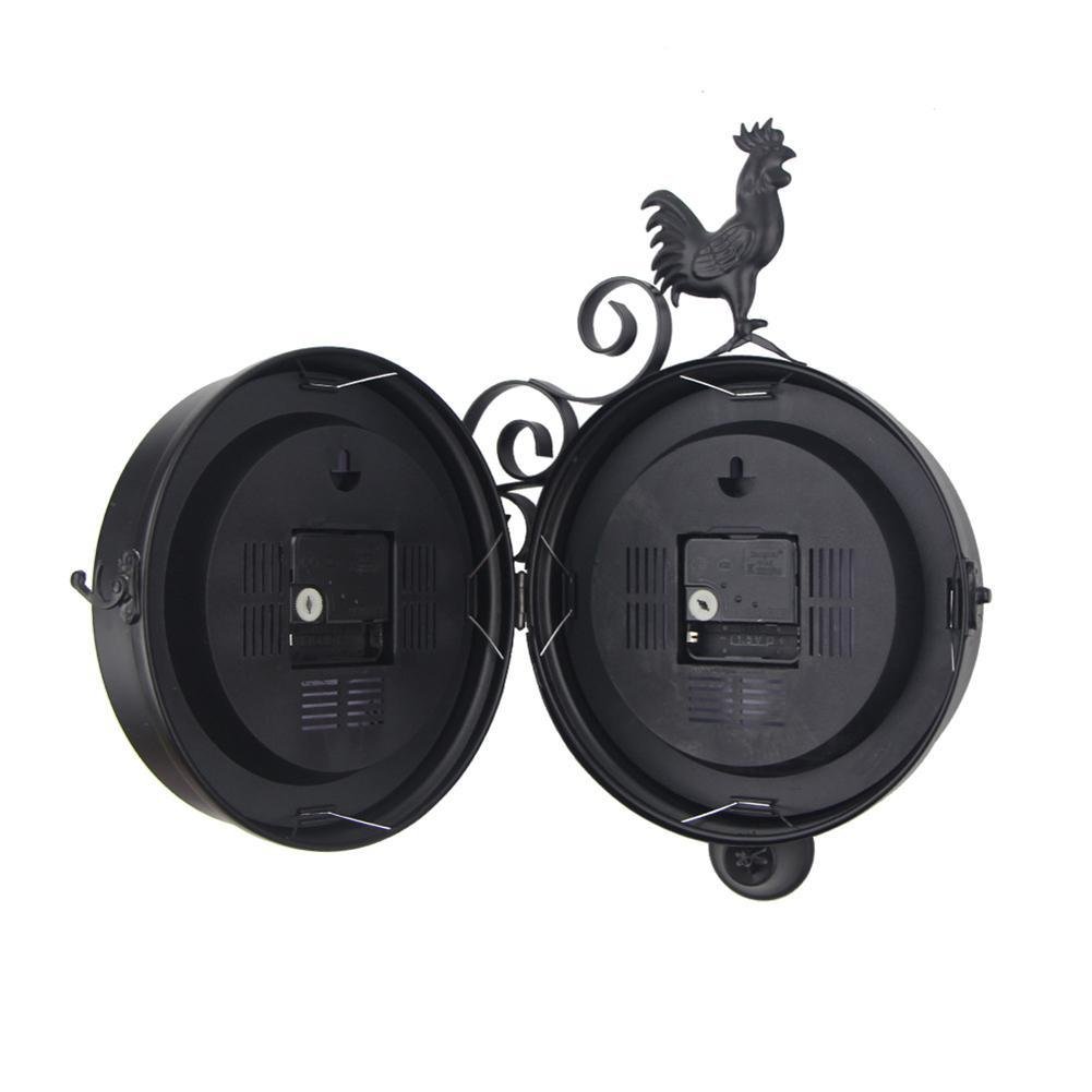 Outdoor Wrought Iron Garden Clock Innovative Fashion Double-Sided Wall Metal Clock Wall Clock Hanging Clock with Cockerel Bell Shape 4