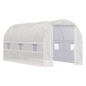 Outsunny 15' x 7' x 7' Walk-In Tunnel Greenhouse, Large Garden Hot House Kit with 6 Roll-up Windows & Roll Up Door, Steel Frame, White
