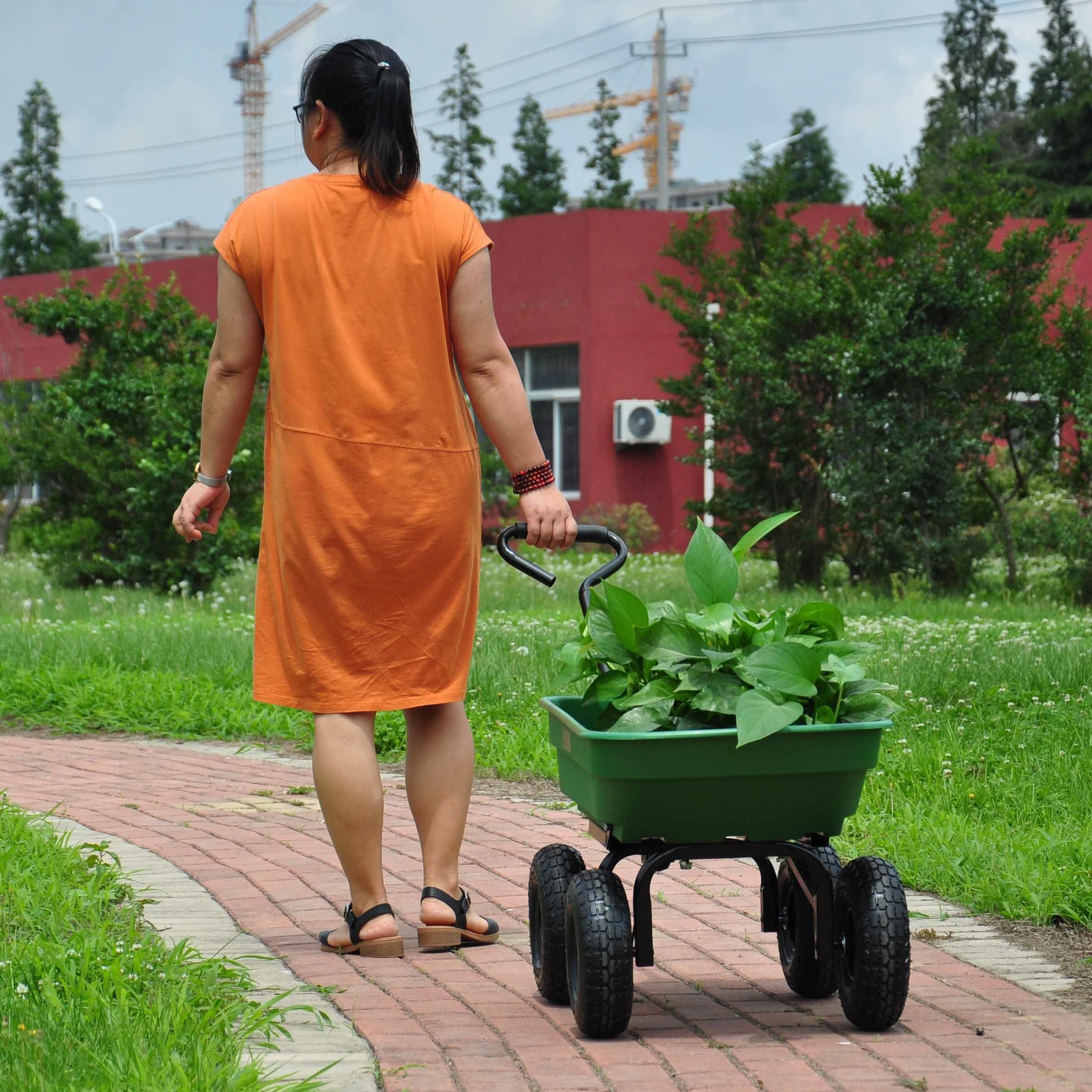 [180 Degree Turn] Garden Dump Cart handle has a 180 degree turn range that makes transportation quick and easy. It is long and flexible enough to adjust angle as needed.