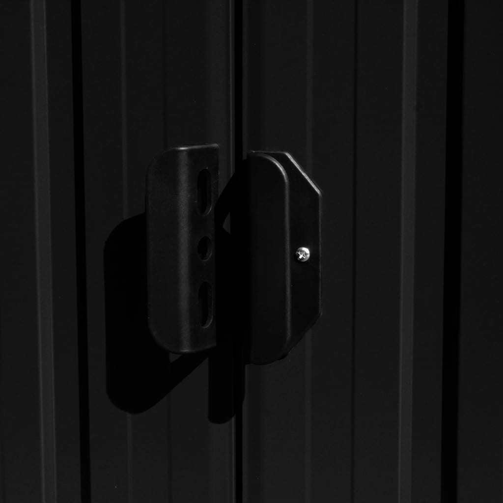 This storage house has vents both in the front and back, ensuring excellent ventilation. Its double sliding doors in the front allow easy entry and exit. Thanks to the galvanized steel construction along with a powder-coated finish, the tool storage shed is durable and strong.