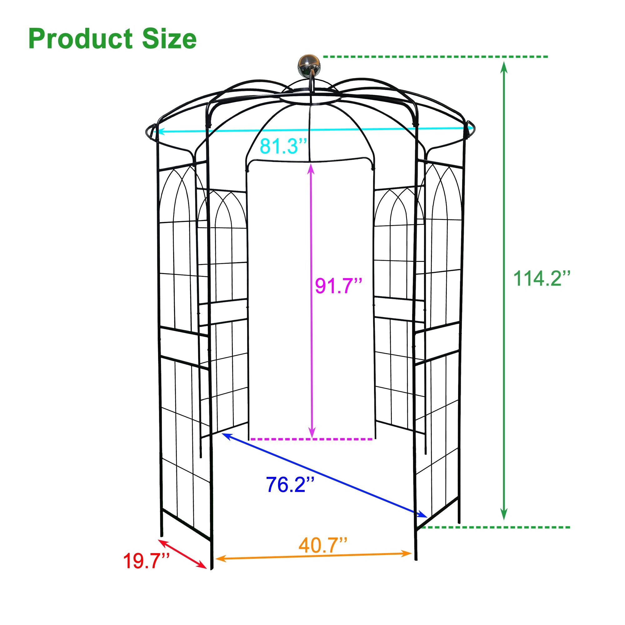Overall Dimensions: Dia 6.8ft x 9.5ft High in total, W3.4ft X H7.6ft of the gate. This size has enough space to hold some scenes and events, such as weddings.