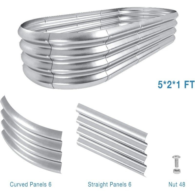 Home > Planter Raised Beds, 5X2X1 FT Land Guard Oval Galvanized Steel Planter Box, Metal Raised Garden Bed kit, for Outdoor Growing