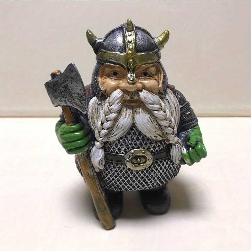 Home > 1pc Viking Victor Norse Gnome Statue, Viking Garden Gnome Figurines With Axe, Dwarf Ornaments For Indoor Outdoor Home Yard
