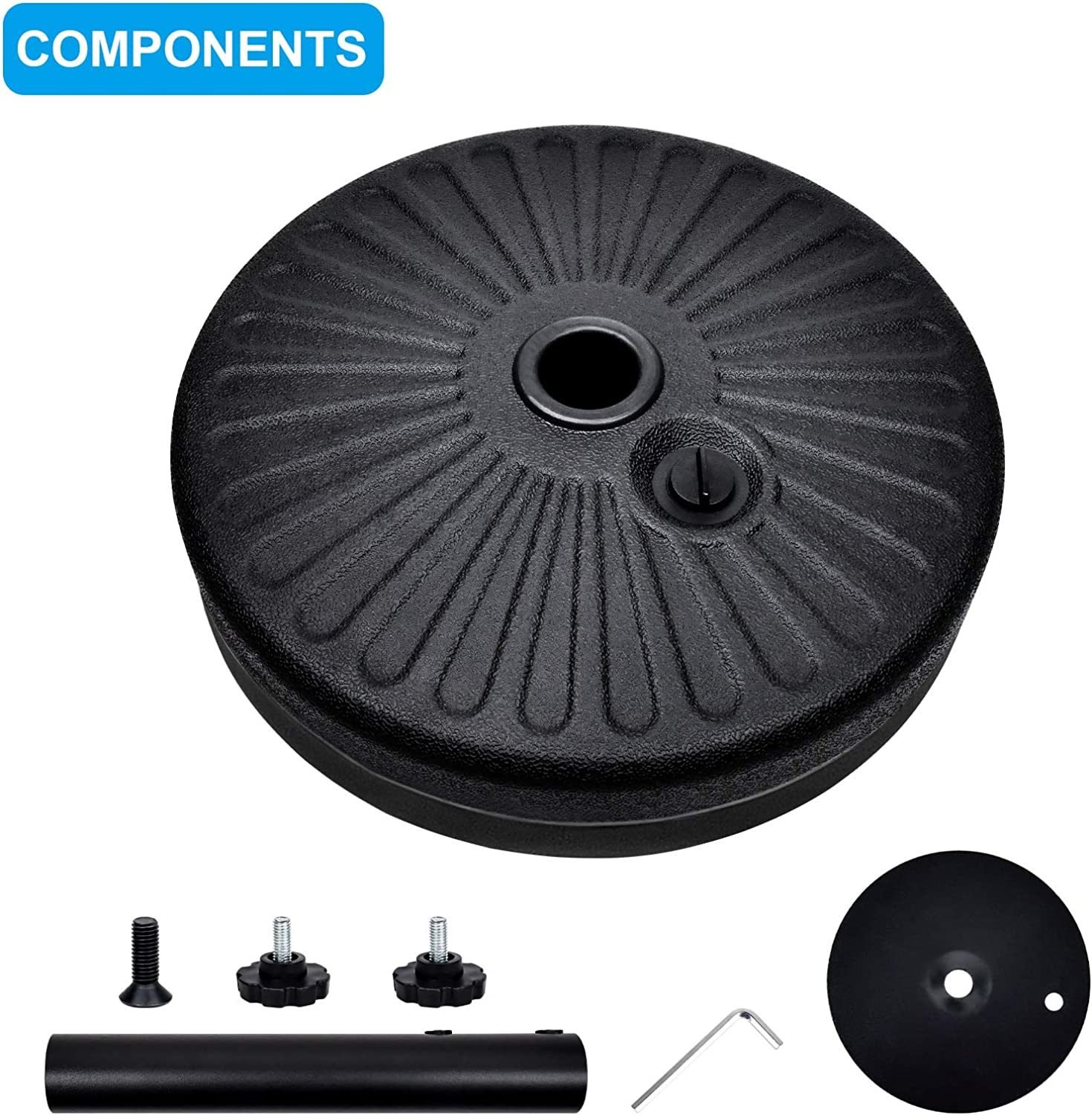 Water or sand filling: The base can be filled with water or sand, has a maximum weight of 50 pounds, and can be easily transported when emptied. Base does not include water and sand. Do not fill with water at or below 32°F to prevent freezing and cracking