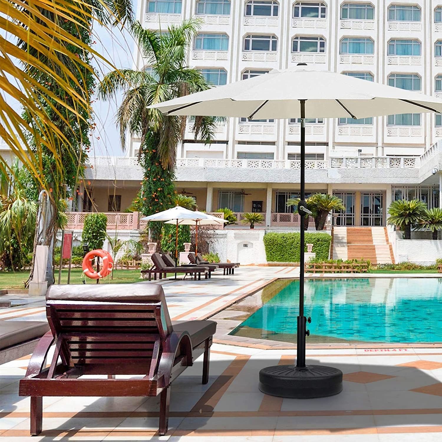 2 adjustable turn knobs: Features two hand-turn tightening knobs for securing umbrella to the base, tighten the adjustable knob in the steel pipe to ensure optimal strength and stability no matter the umbrella's pole size
