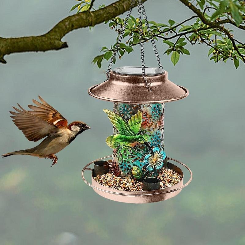 5.Stylish Garden Decoration: This solar bird feeder is a stylish part of your garden that attracts and feeds birds. It is handmade with high-quality materials and has a unique design. It is also a perfect gift for bird lovers.