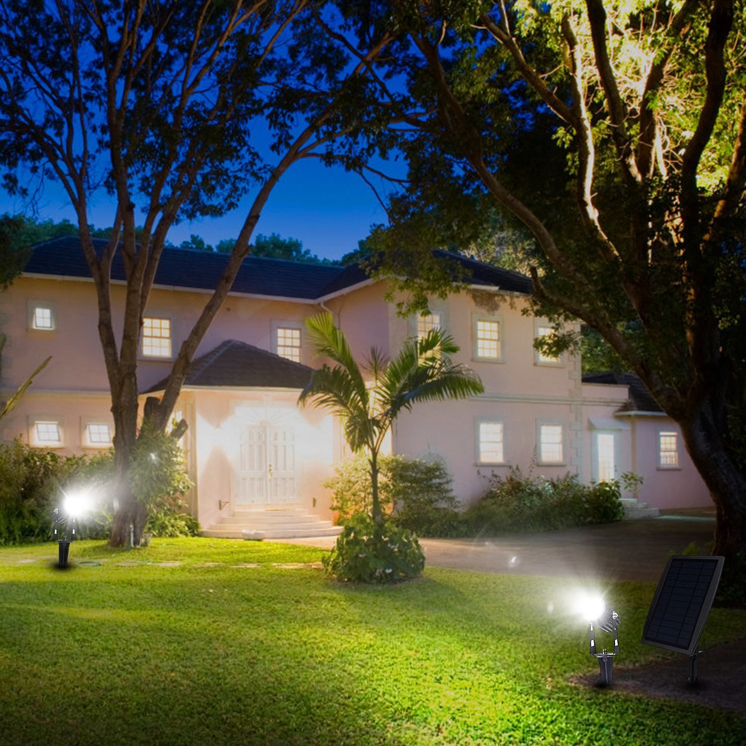 **ULTRA-BRIGHT & FLEXIBLE LIGHTS*:Comes with 2pc upgraded LED beads(1pc/light) offer up to 2000lm brightness. The solar spotlight allows you to adjust lighting angle(90°) to get optimal illumination and adjust solar panel(180°) to well-lit location. Note:Please put the panel under direct sunshine before use to get better experience.